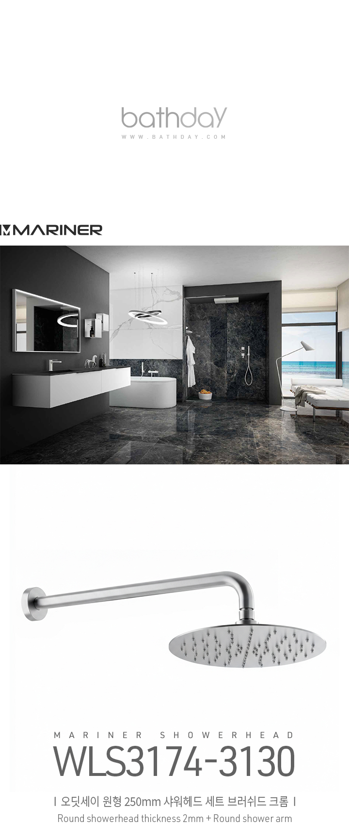 오딧세이 원형 250mm 샤워헤드세트 브러쉬드 크롬