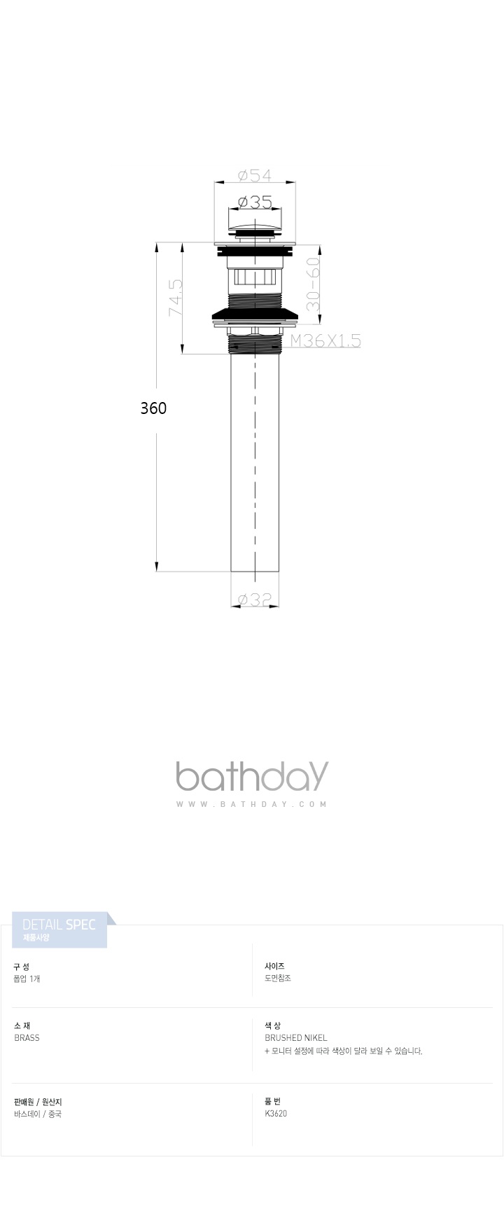 국산 세면기에 사용되는 1인치 오버배수구용 니켈 자동폽업 입니다.