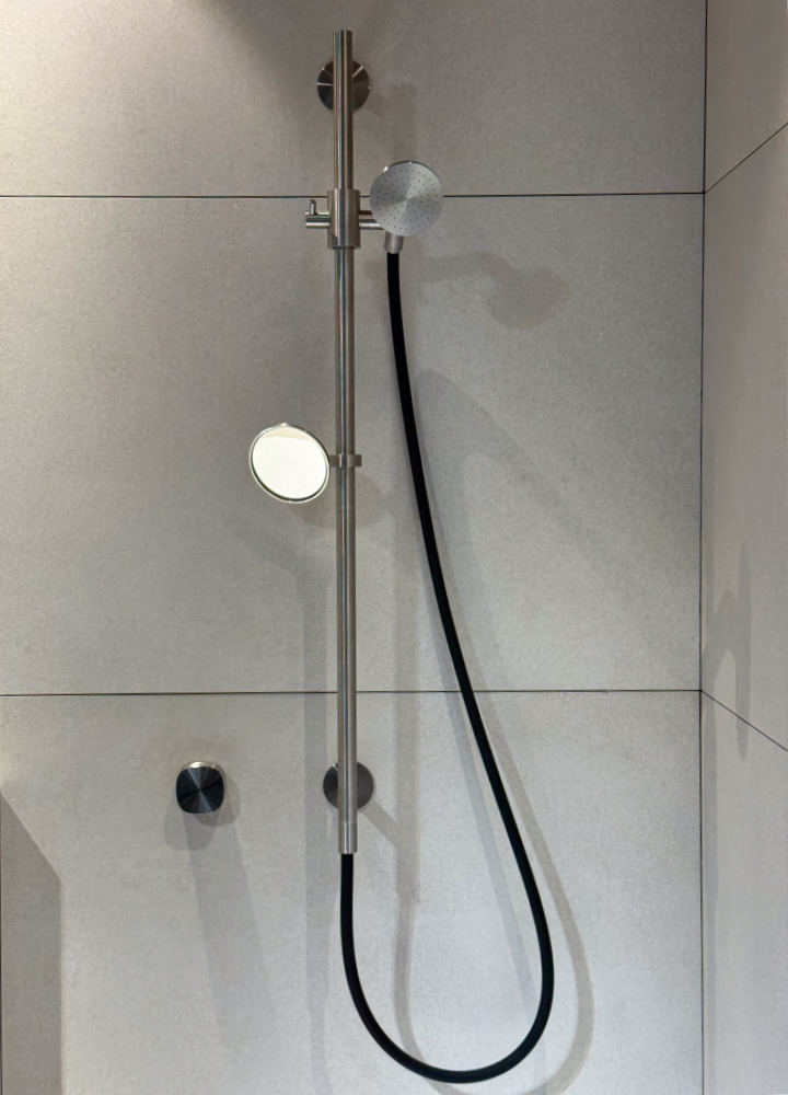 물이 나오는 아울렛과 슬라이드바 일체형 제품입니다