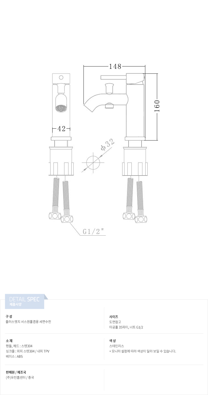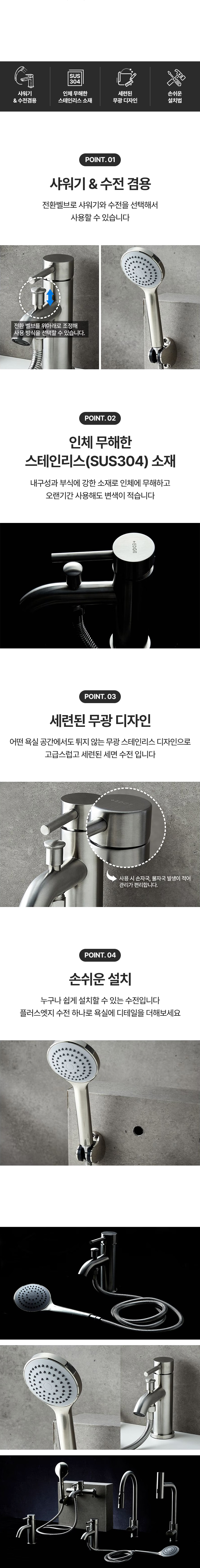 플러스엣지 SUS304 샤워 욕조수전, 플러스엣지 SUS304 원홀수전