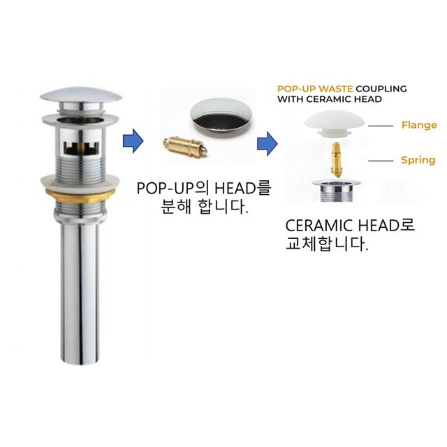 당사에서 판매하는 K82 폽업 (오버/멍 공통)의 HEAD 부(황동 소재)를 화이트 도기(CERAMIC)소재로 교체하여 사용하는 제품입니다.