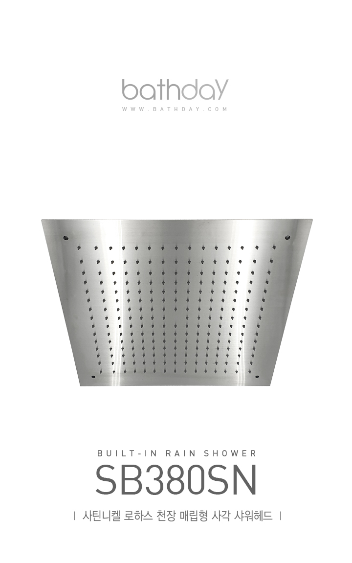 사틴 니켈 로하스 천장 매립형 사각 샤워헤드 430