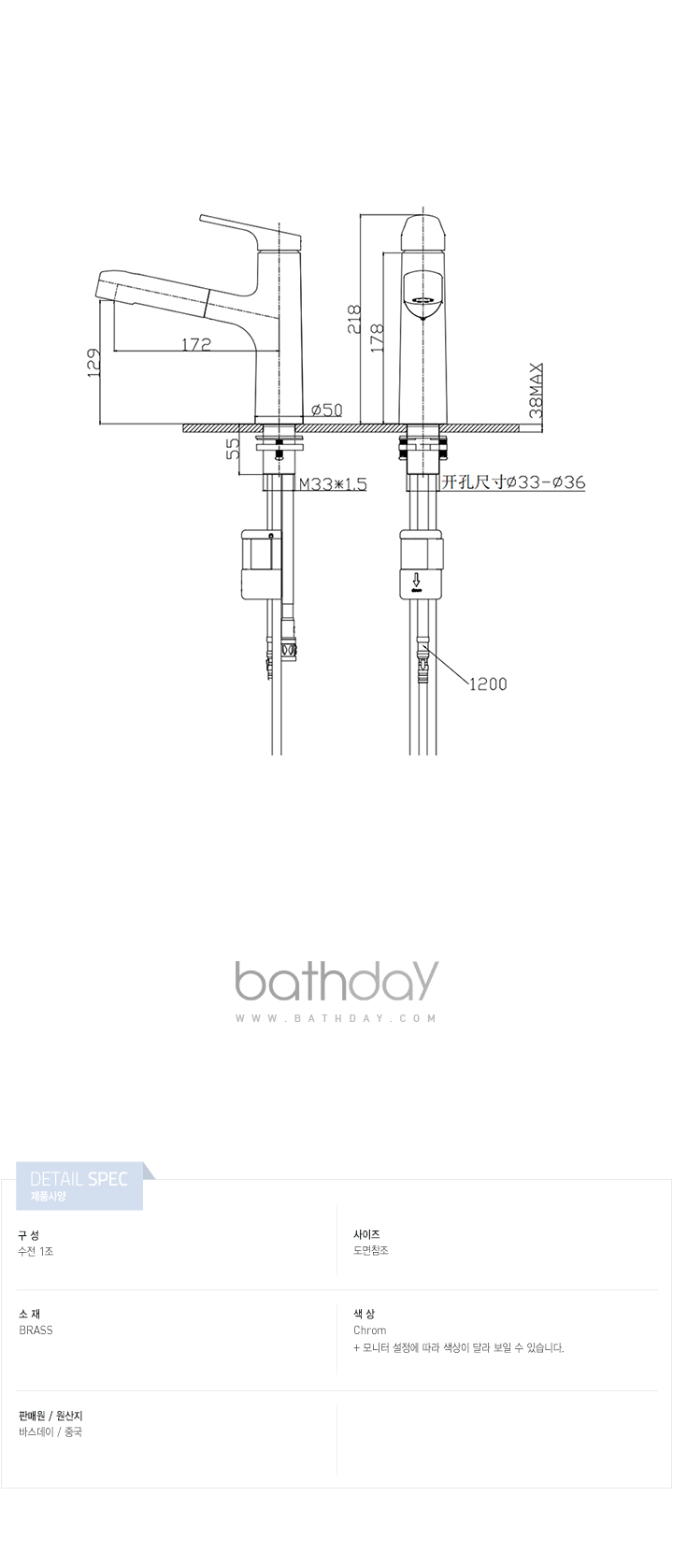 수전의 크기가 큼으로 세면기 선택시 주의 하시기 바랍니다