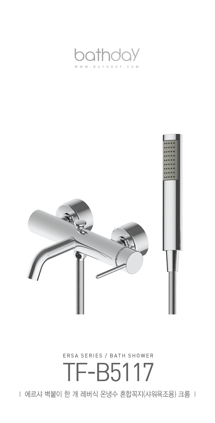 에르샤 벽붙이 한 개 레버식 온냉수 혼합꼭지(샤워욕조용) 크롬